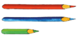 Синий и зелёный карандаш одинаковые по длине. Они длиннее, чем красный, а красный короче, чем зелёный и синий.