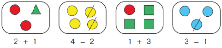 2 + 1 = 3 4 - 2 = 2 1 + 3 = 4 3 - 1 = 2
