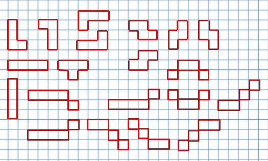 Все фигуры состоят из четырёх клеток.