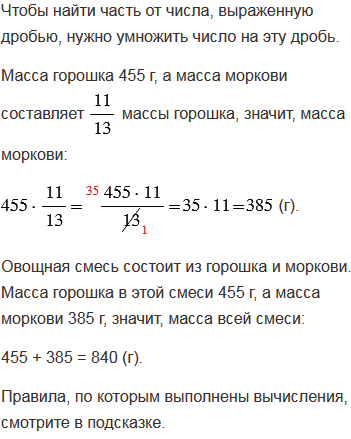 массы горошка. Найдите массу смеси, если горошка в ней 455 г.