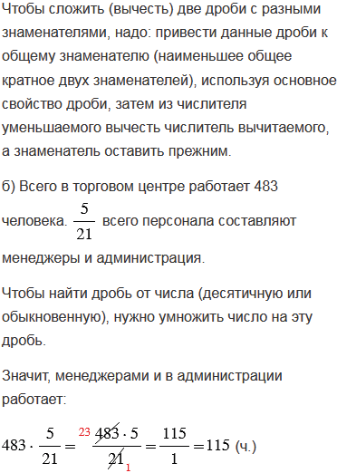 б) Сколько человек работает менеджерами и в администрации, если всего в торговом центре работает 483 человека?