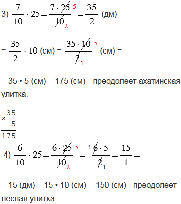 д) сколько сантиметров преодолеет каждая улитка за 25 мин.