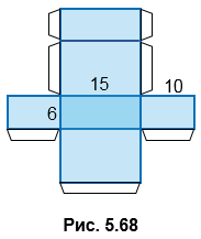 На плотном листе бумаги нарисуйте развертку прямоугольного параллелепипеда (рис. 5.68) в натуральную величину (размеры даны в сантиметрах). Вырежьте ее, согните по ребрам, намажьте клеем клапаны и склейте модель. Клапаны для склеивания нарисованы тонкой черной линией.