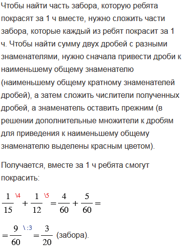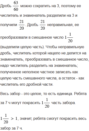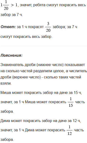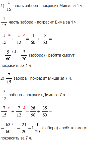 Миша может покрасить забор на даче за 15 ч, а Дима - за 12 ч. Какую часть забора они смогут покрасить за 1 ч вместе? Смогут ли они покрасить весь забор за 7 ч?