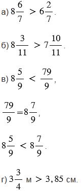 Из двух смешанных чисел, у которых различная целая часть, меньше то число, у которого целая часть меньше. Из двух смешанных чисел, у которых одинаковая целая часть, меньше то число, у которого дробная часть меньше.