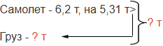 Найдите массу самолёта с грузом, если масса самолета 6,2 т и он тяжелее поднимаемого им груза на 5,31 т.
