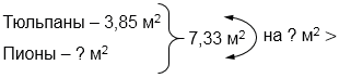 1) 7,33 - 3,85 = 3,48 (м2) - занимают пионы.