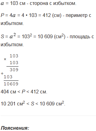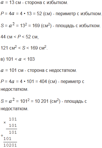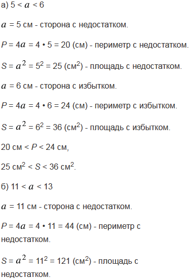 Сторона квадрат см. Укажите приближенные значения с недостатком и с избытком для периметра и для площади этого квадрата, если: