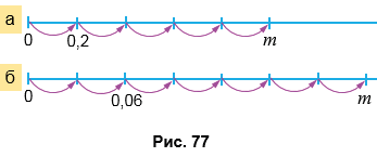 б) На координатном луче одному отрезку соответствует значение 0,03 (т.к. 0,03 + 0,03 = 0,06), чтобы получить число