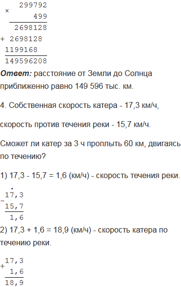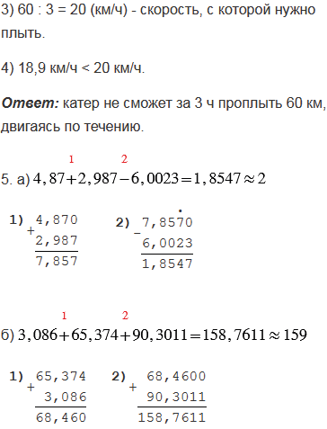 4. Собственная скорость катера 17,3 км/ч, а скорость против течения реки 15,7 км/ч. Сможет ли катер за 3 ч проплыть 60 км, двигаясь по течению?