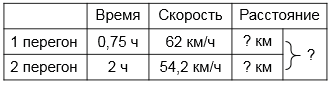 Первый перегон электропоезд прошел за 0,75 ч со скоростью 62 км/ч, значит, длина первого перегона: