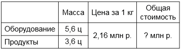 Масса контейнеров с оборудованием 5,6 ц, а контейнеров с продуктами - 3,6 ц, значит, общая масса всех контейнеров: