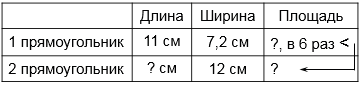 Стороны первого прямоугольника равны 11 см и 7,2 см, значит, площадь первого прямоугольника: