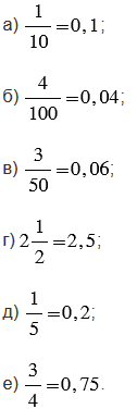 Чтобы преобразовать обыкновенную дробь в десятичную, можно числитель дроби разделить на ее знаменатель.
