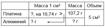 Масса 1 см3 платины равна 21,44 г, что на 18,74 г больше массы 1 см3 алюминия, значит, масса 1 см3 алюминия: