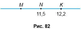 На рисунке 82 отрезки MN и NK равны. Найдите координату точки М. Найдите среднее арифметическое координат точек М и K.