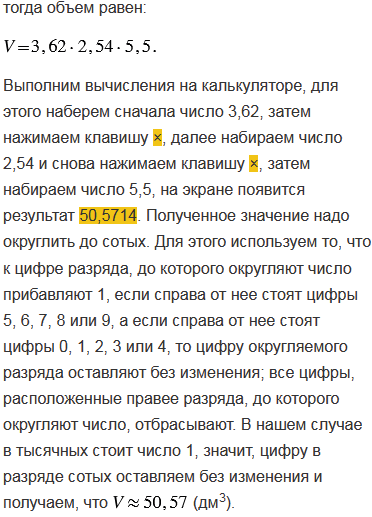 Вычислите на калькуляторе объём прямоугольного параллелепипеда, если его измерения равны 3,62 дм, 2,54 дм и 5,5 дм. Ответ округлите до сотых.