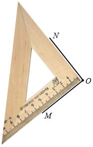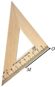 2) вершину прямого угла чертежного треугольника совместить с точкой О, а одну из сторон с лучом ОМ;