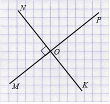 Чтобы построить две прямые пересекающиеся под прямым углом, сначала чертим одну прямую МР и отмечаем на ней точку О.