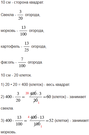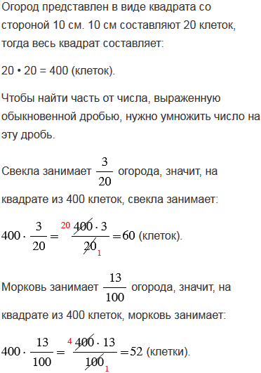 Нарисуйте квадрат со стороной 10 см. Пусть он изображает огород. Свекла занимает