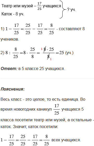 учащихся 5 класса посетили театр или музей, а остальные - каток. Сколько учащихся в 5 классе, если на каток выбрались 8 учеников класса?