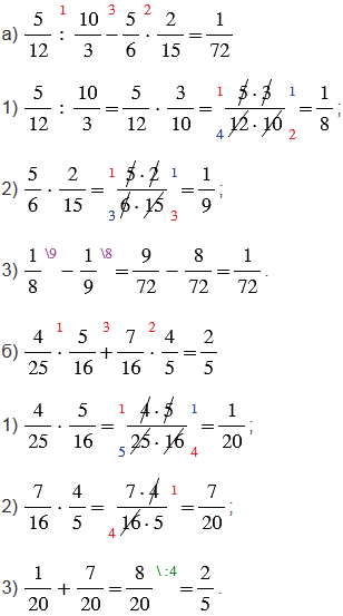 Красные числа, стоящие сверху над действиями, показывают в каком порядке нужно выполнять действия.