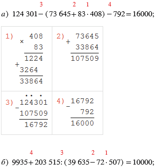 б) 9935 + 203 515 : (39 635 - 72 • 507);
