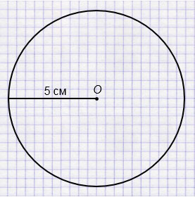 Проведите окружность с центром О и радиусом 5 см и найдите её диаметр.