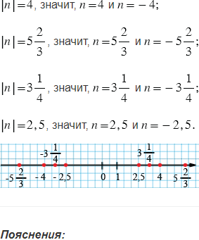 Отметьте на координатной прямой числа, модули которых равны 4, 2,5.