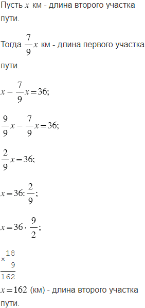 длины второго участка. Чему равна длина всего пути, если второй участок длиннее первого на 36 км?