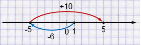 е) 1 + (-6) + 10 = -5 + 10 = 5