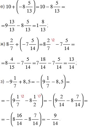 Чтобы сложить два числа с разными знаками, надо: найти модули слагаемых (модуль числа принимает только неотрицательные значения); из большего модуля вычесть меньший модуль; перед полученным числом поставить знак слагаемого с большим модулем (обычно сначала определяют и записывают знак суммы, а потом в скобках находят разность модулей, если сумма в итоге получается положительной, то скобки можно не ставить).