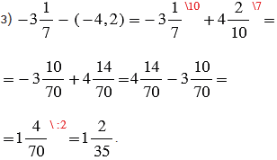 Чтобы сложить два числа с разными знаками, надо: найти модули слагаемых (модуль числа принимает только неотрицательные значения); из большего модуля вычесть меньший модуль; перед полученным числом поставить знак слагаемого с большим модулем (обычно сначала определяют и записывают знак суммы, а потом в скобках находят разность модулей, если сумма в итоге получается положительной, то скобки можно не ставить).