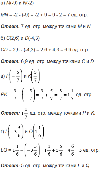 Чтобы найти расстояние между точками на координатной прямой, надо из большей координаты вычесть меньшую координату. На координатной прямой из двух чисел большее число расположено правее меньшего.