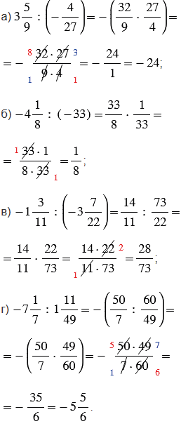 Чтобы найти частное двух чисел с разными знаками, надо разделить модуль делимого на модуль делителя и поставить перед полученным числом знак "-".