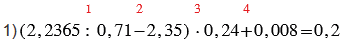 1) (2,2365 : 0,71 - 2,35) • 0,24 + 0,008;