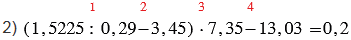 2) (1,5225 : 0,29 - 3,45) • 7,35 - 13,03;