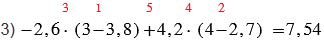 3) -2,6 • (3 - 3,8) + 4,2 • (4 - 2,7);