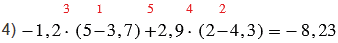 4) -1,2 • (5 - 3,7) + 2,9 • (2 - 4,3).