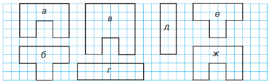 3. Найди равные фигуры и обоснуй свой ответ. Нарисуй фигуры, равные фигурам а и д.