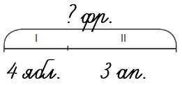 в) Условие: Таня положила в вазу 4 яблока и 3 апельсина.