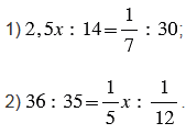 Чтобы найти неизвестный член пропорции используем то, что произведение крайних членов пропорции равно произведению ее средних членов, и получаем уравнение, в котором неизвестен множитель. Чтобы найти неизвестный множитель, нужно произведение разделить на известный множитель.