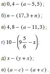 Сначала в каждом выражении раскрываем скобки, при этом помним: