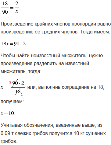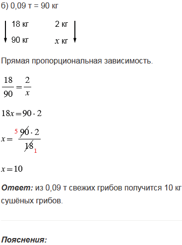 б) Сколько сушёных грибов получится из 0,09 т свежих, если из 18 кг свежих белых грибов получается 2 кг сушёных?