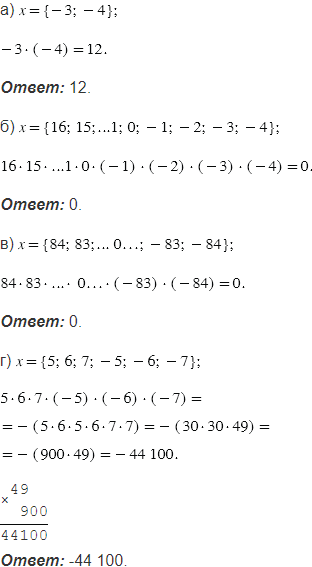 Вычислите произведение целых чисел: