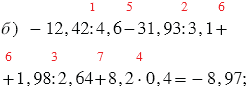Красные числа, стоящие сверху над действиями, показывают в каком порядке нужно выполнять действия.