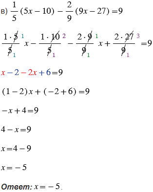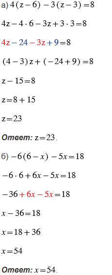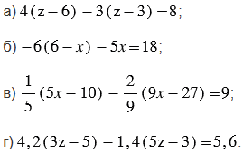 Сначала каждое из уравнений упрощаем, для этого сначала раскрываем скобки. Чтобы раскрыть скобки, нужно множитель, стоящий за скобками, умножить на каждое слагаемое, стоящее в скобках (учитываем то, что вычитание можно заменить сложением с противоположным числом) . При этом помним: