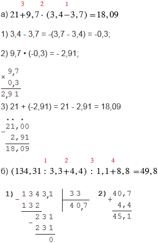 Красные числа, стоящие сверху над действиями, показывают в каком порядке нужно выполнять действия.