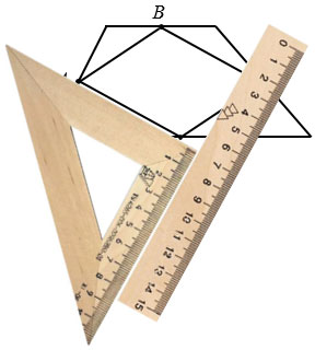 Чтобы проверить параллельность сторон АD и ВС, прикладываем чертежный треугольник к стороне АD одной из его сторон образующих прямой угол, а вдоль другой стороны чертежного треугольника, образующей прямой угол, прикладываем линейку.