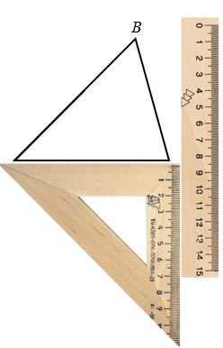 Чтобы провести прямую параллельную стороне АС, проходящую через точку В, прикладываем чертежный треугольник к стороне АС одной из его сторон образующих прямой угол, а вдоль другой стороны чертежного треугольника, образующей прямой угол, прикладываем линейку.